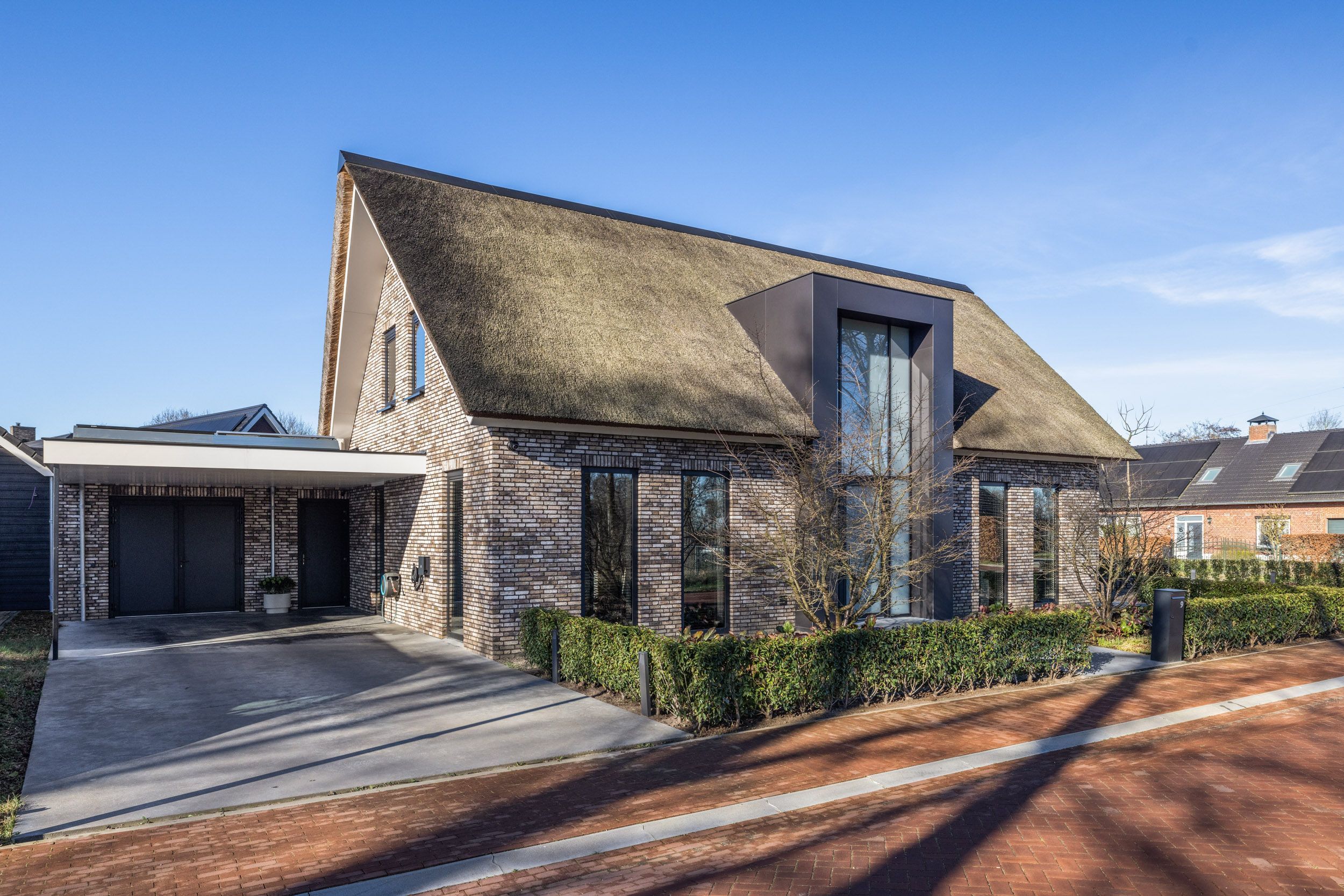 Bij de bouw van deze villa is nadrukkelijk gekozen voor duurzame materialen en energiezuinige technieken. De woning beschikt over een hoogwaardig isolatiepakket, onderhoudsarme aluminium kozijnen met HR++ beglazing en een karakteristieke rieten kap met extra geïsoleerde dakplaten. Dit draagt bij aan een aangenaam binnenklimaat en lage energielasten.