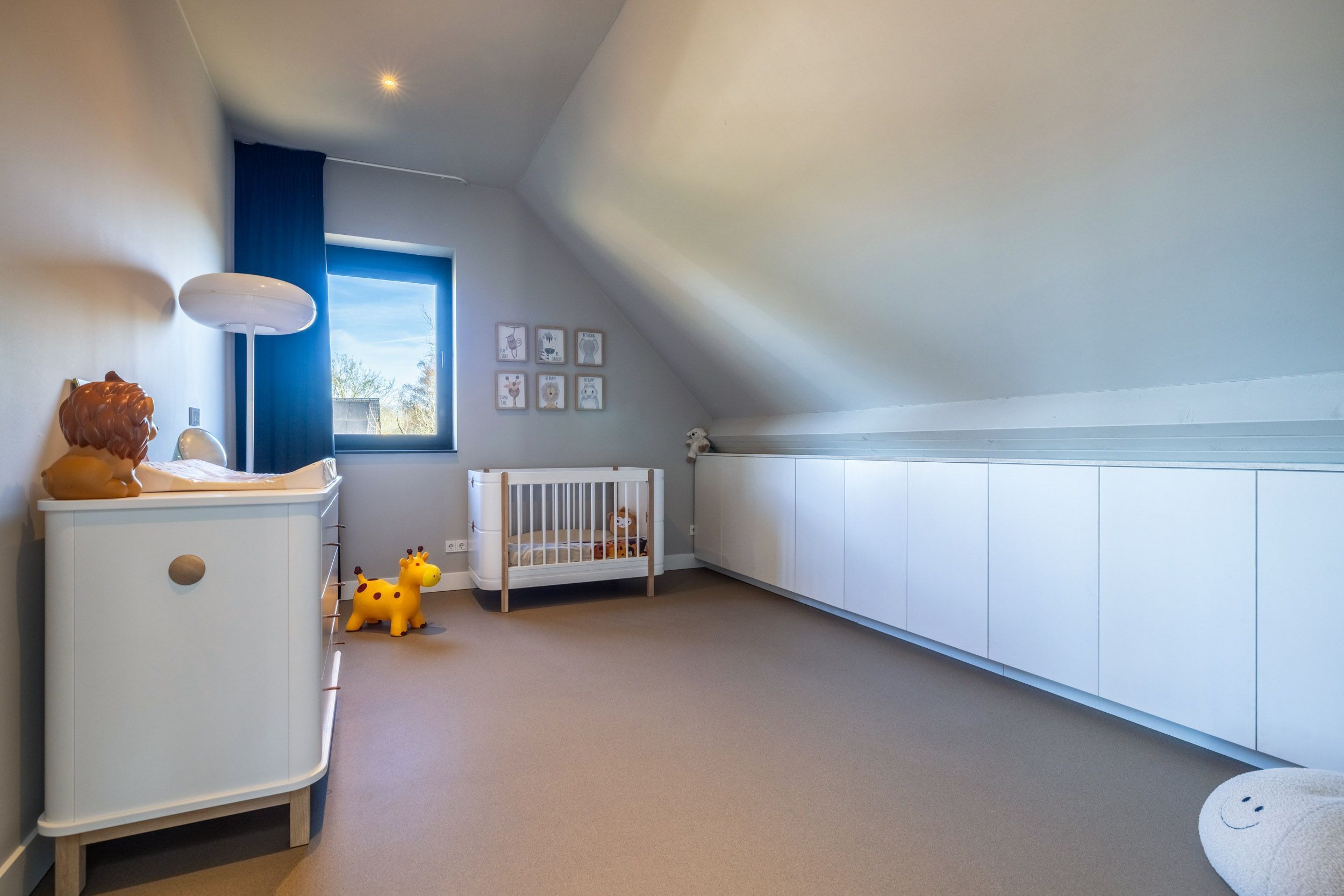 Aan de voorzijde van de woning bevindt zich een multifunctionele werkkamer, momenteel in gebruik als speelkamer. Deze ruimte leent zich uitstekend als representatief thuiskantoor, studeerkamer of hobbyruimte.