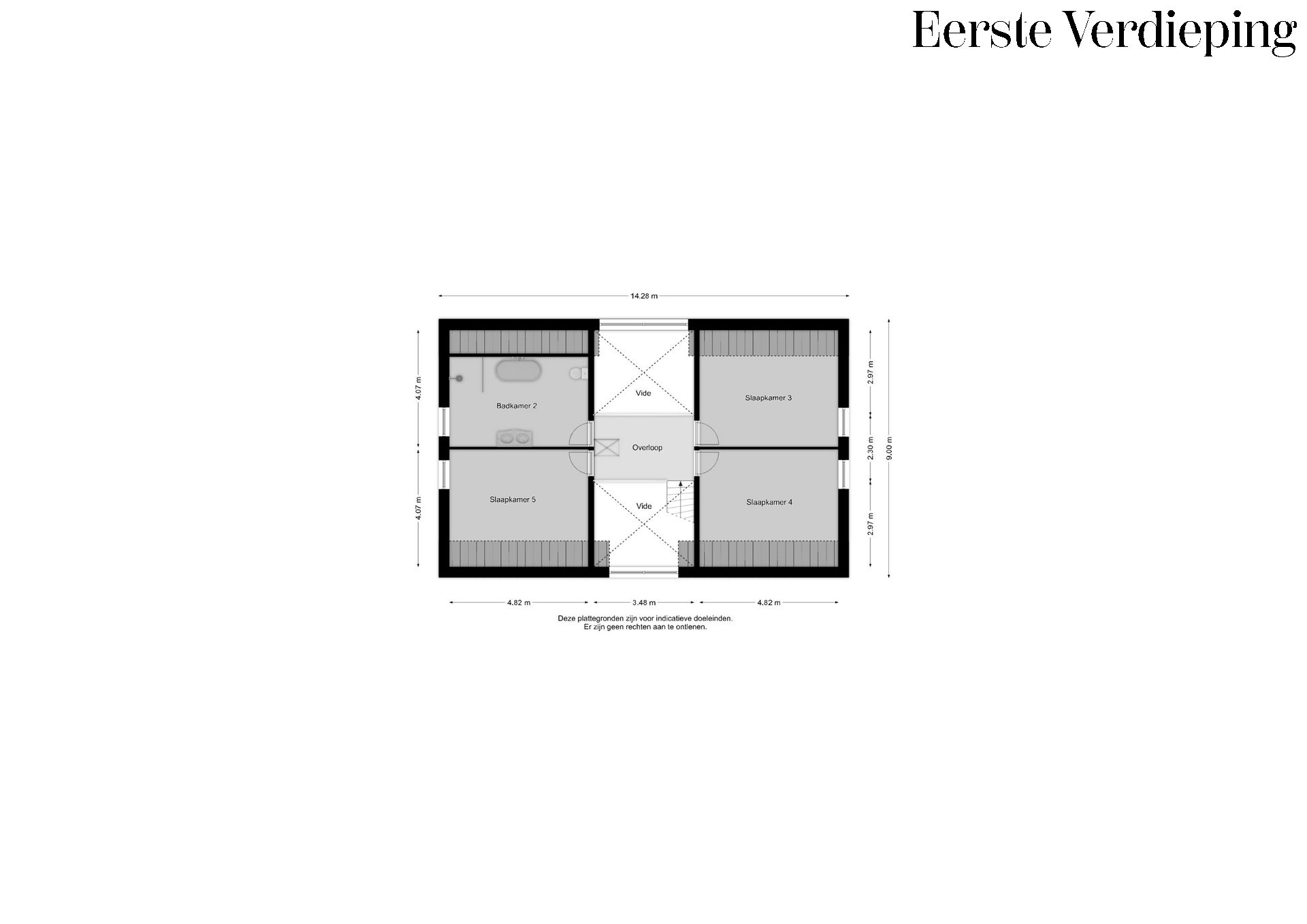 1E VERDIEPING: DRIE SLAAPKAMERS EN TWEEDE BADKAMER