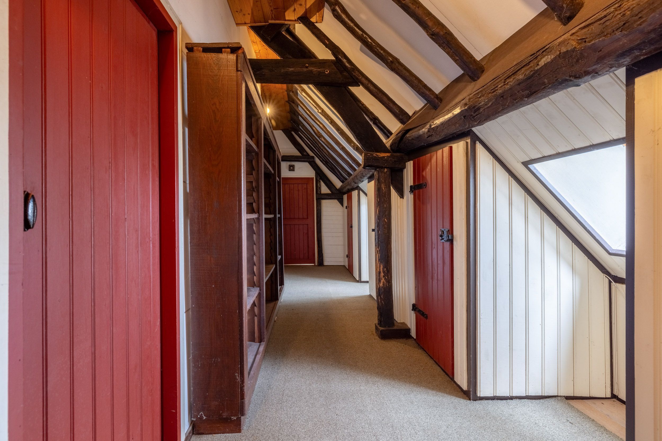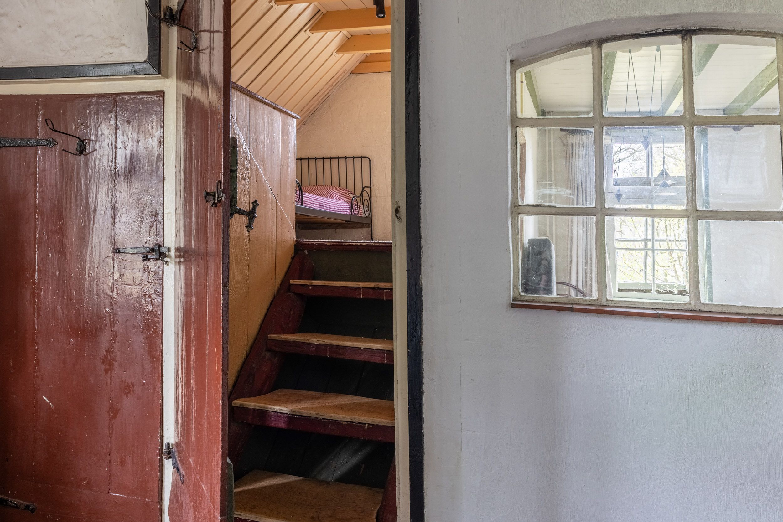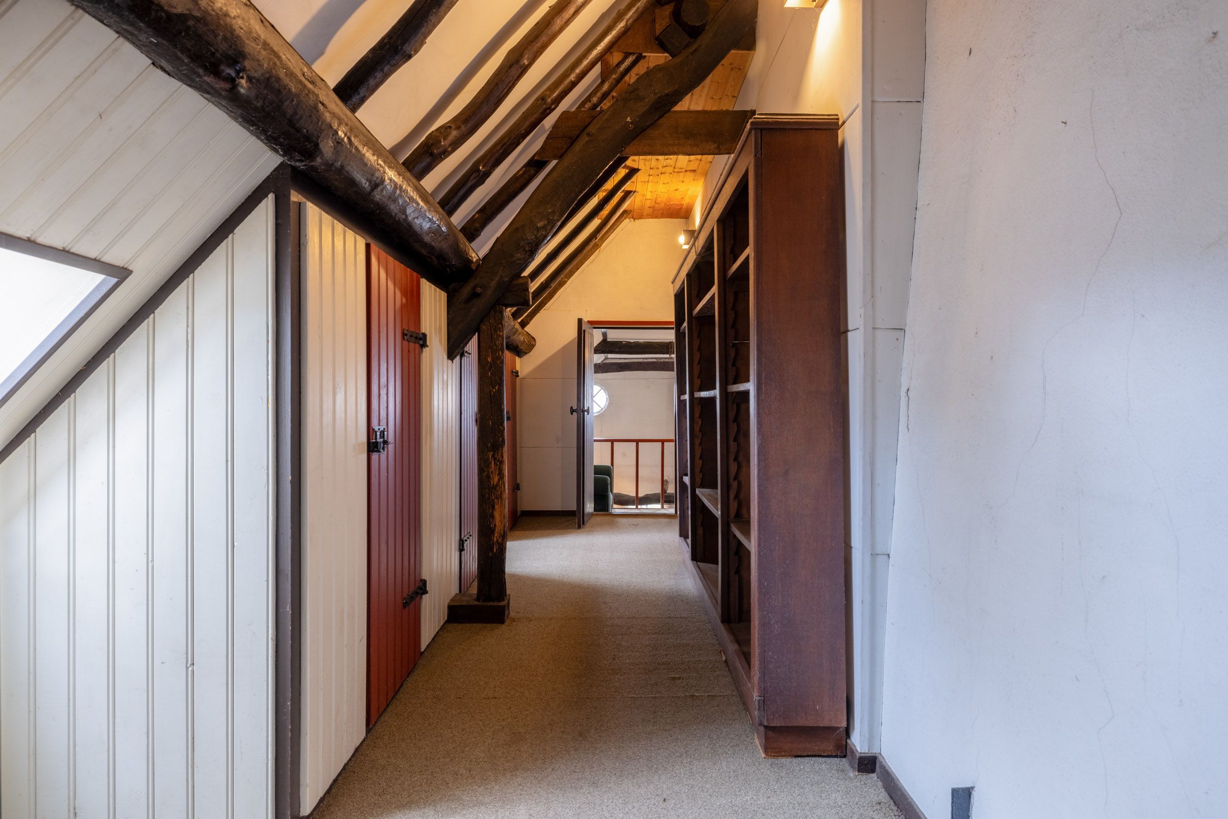 Een woning met historie en sfeer, met behoud van kenmerkende elementen zoals houten gebinten, originele deuren met beslag en karakteristieke stalraampjes.