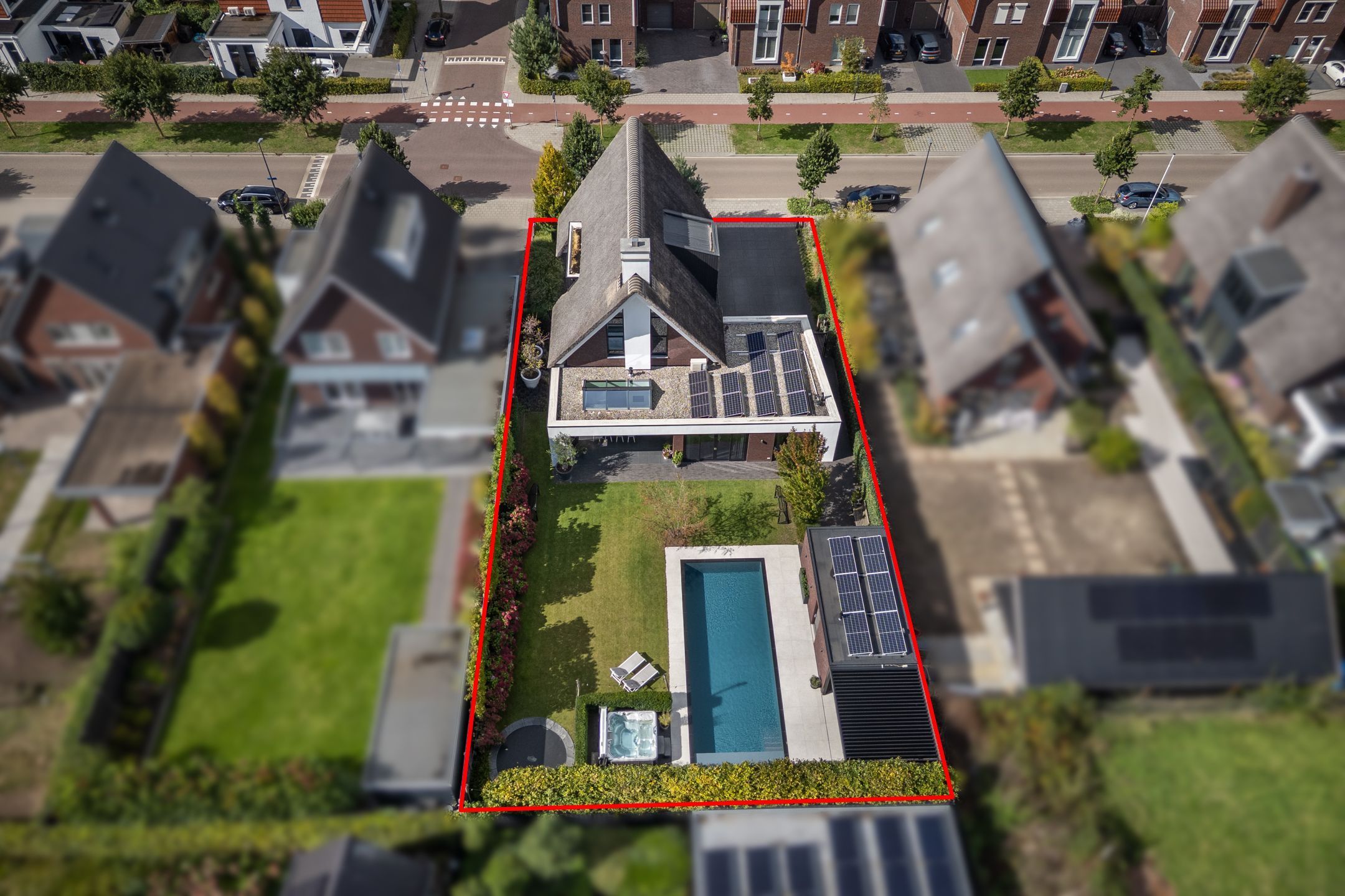 Er zijn van die huizen, die werkelijk alles hebben – en deze vrijstaande villa is daar het perfecte voorbeeld van. Gebouwd in 2019, voorzien van een elegante rieten kap, met ruim 270 m² woonoppervlak op een royaal perceel van 812 m². Een woning die uitblinkt in ruimte, stijl en comfort: van sfeervolle leefruimtes en een exclusieve leefkeuken tot slimme domo-tica en high-end multimedia – binnen én buiten. En met meerdere luxe badkamers en een schitterend overloop-zwembad in de zonnige tuin is het woonplezier hier tot in detail doorgevoerd.