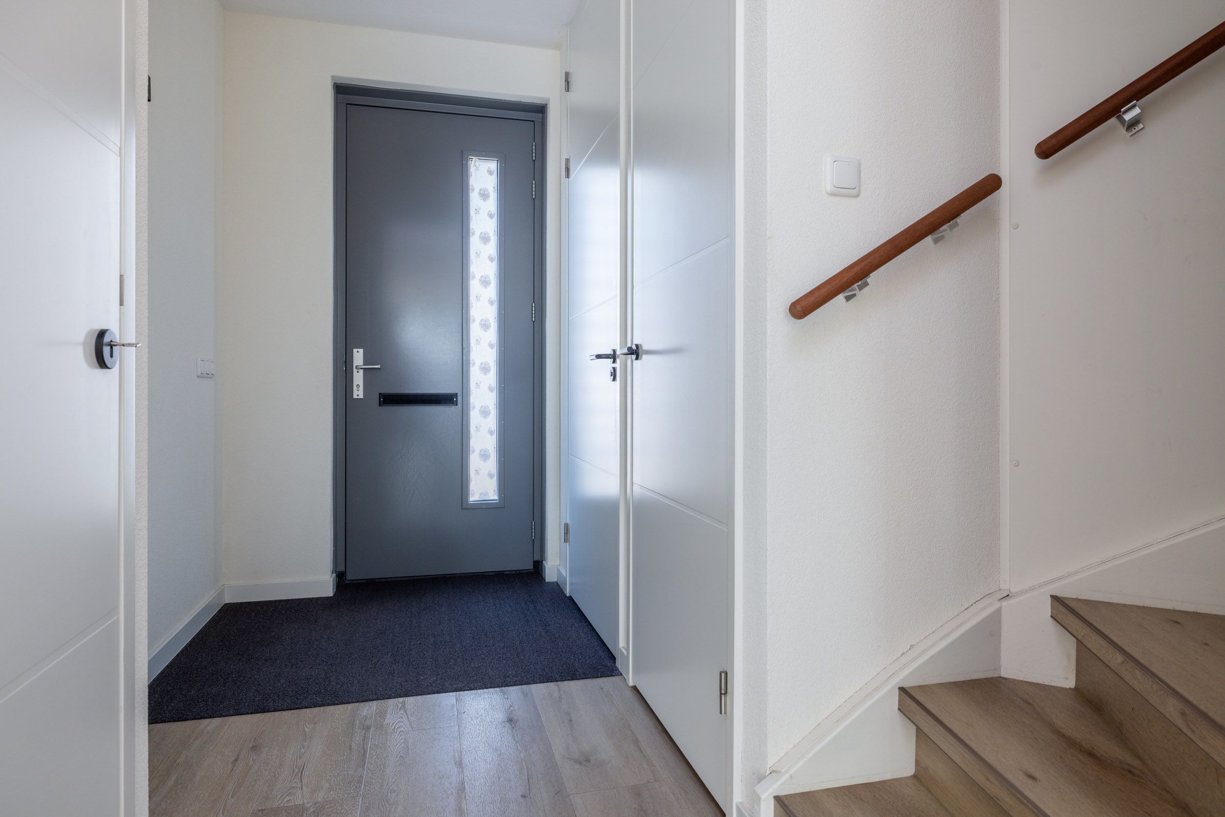 Aan de voorzijde van de woning heeft u een vrij uitzicht op groenstroken, de straat en een tegenovergelegen appartementencomplex. Aan de achterzijde kijkt u uit op de fraai aangelegde achtertuin met berging en poort.